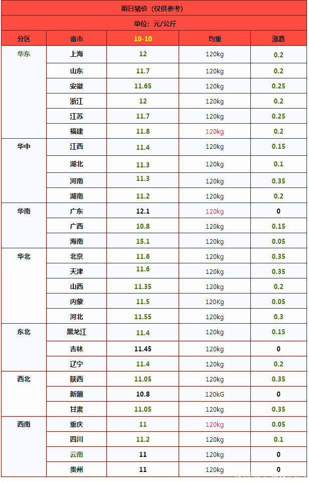 从最新消息了解,受屠宰场调价,预计,10月10日,外三元标猪报价在11.54元/公斤,后市关注购销情绪的变化!