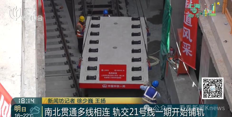 昨天上午,在21号线佳林路站铺轨基地施工现场,起重机将一个个预制轨道板吊入隧道,轨道车运送至指定位置后,再由吊车将其放置在道床上。