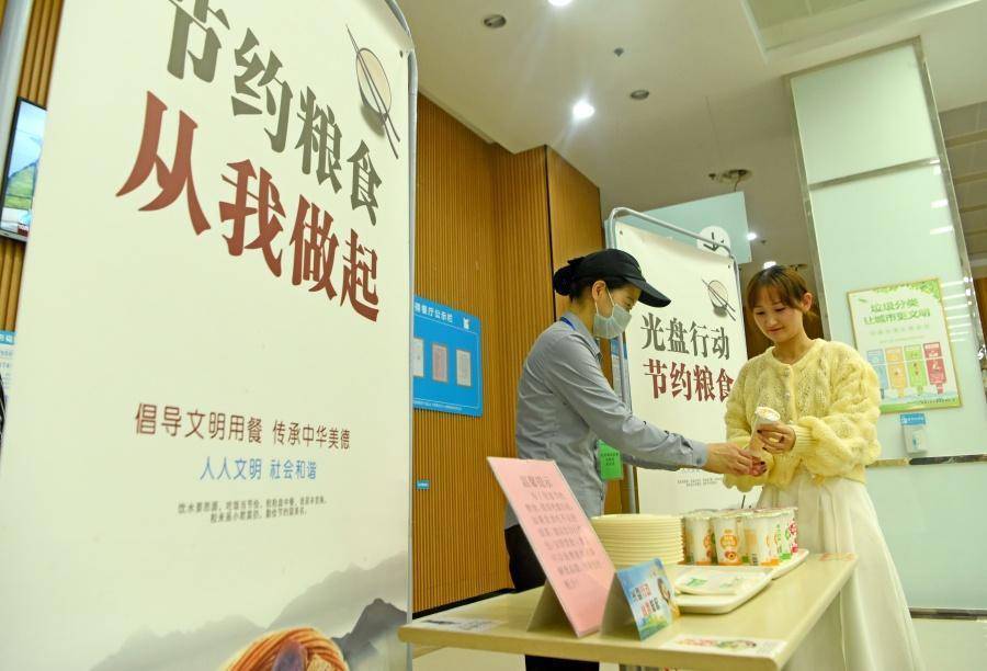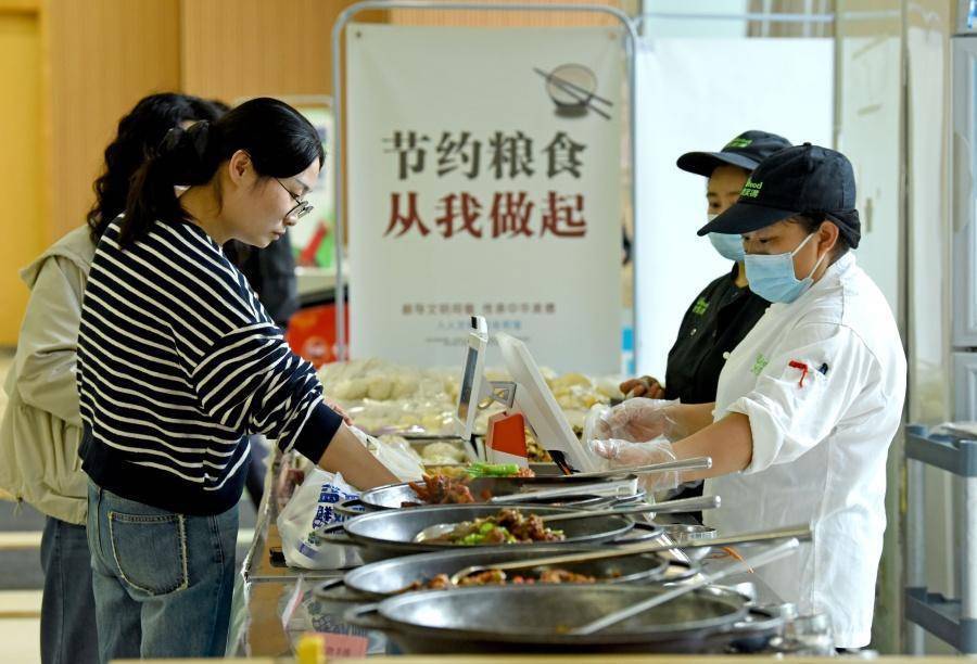 2025年10月16日,安徽省淮南市政务中心食堂,工作人员根据用餐人员需求中股配资官网,设置半份菜、双拼菜窗口,制止浪费饭菜行为,培养节约粮食好习惯。当日是世界粮食日,今年主题为“手拉手共倡多样美食,聚合力同创美好未来”。(陈彬 文/图)